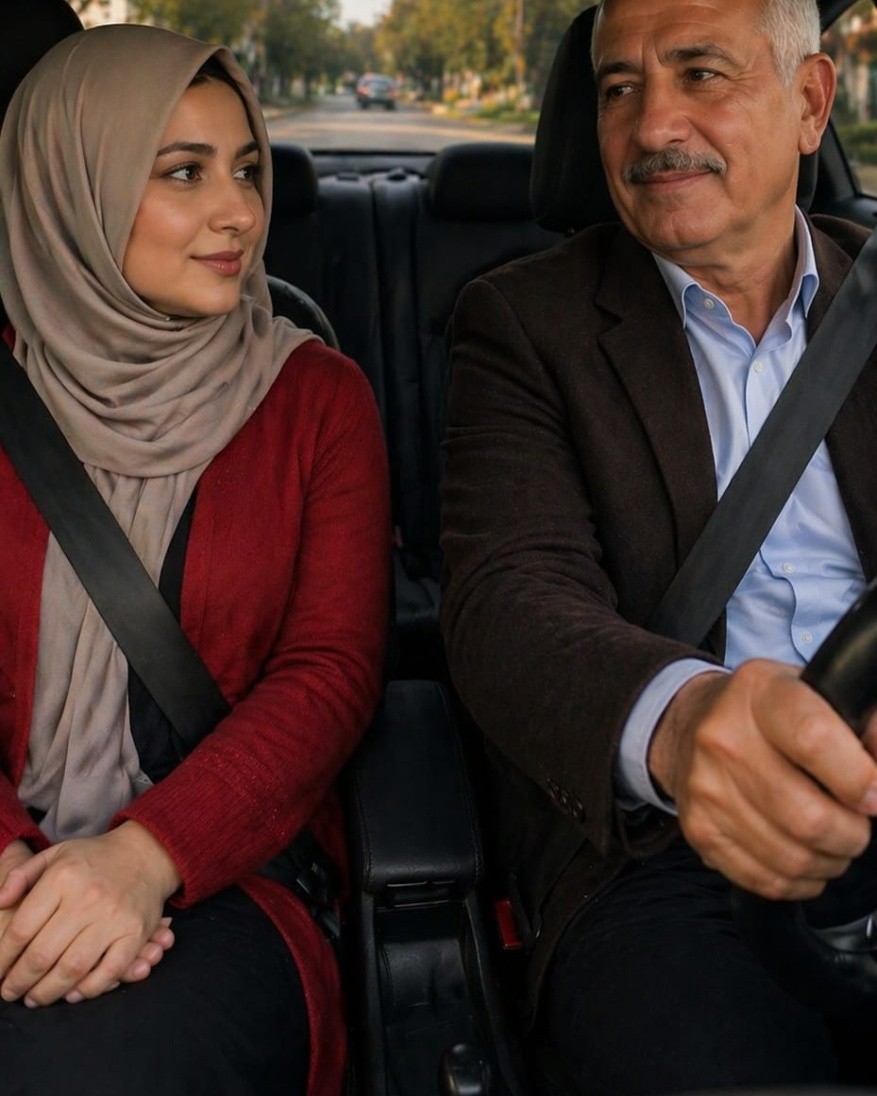 Arabaya bindim. İçimde hem merak hem de hafif bir tedirginlik vardı. Kayınpederim direksiyona geçti, yüzünde her zamanki sakin ve güven veren ifade vardı. Bana dönüp, “Korkma kızım, seni kötü bir yere götürmüyorum. Bugün biraz nefes almanı istedim,” dedi.
